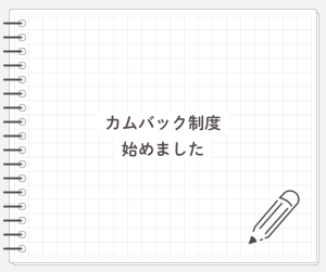 カムバック制度始めました!!