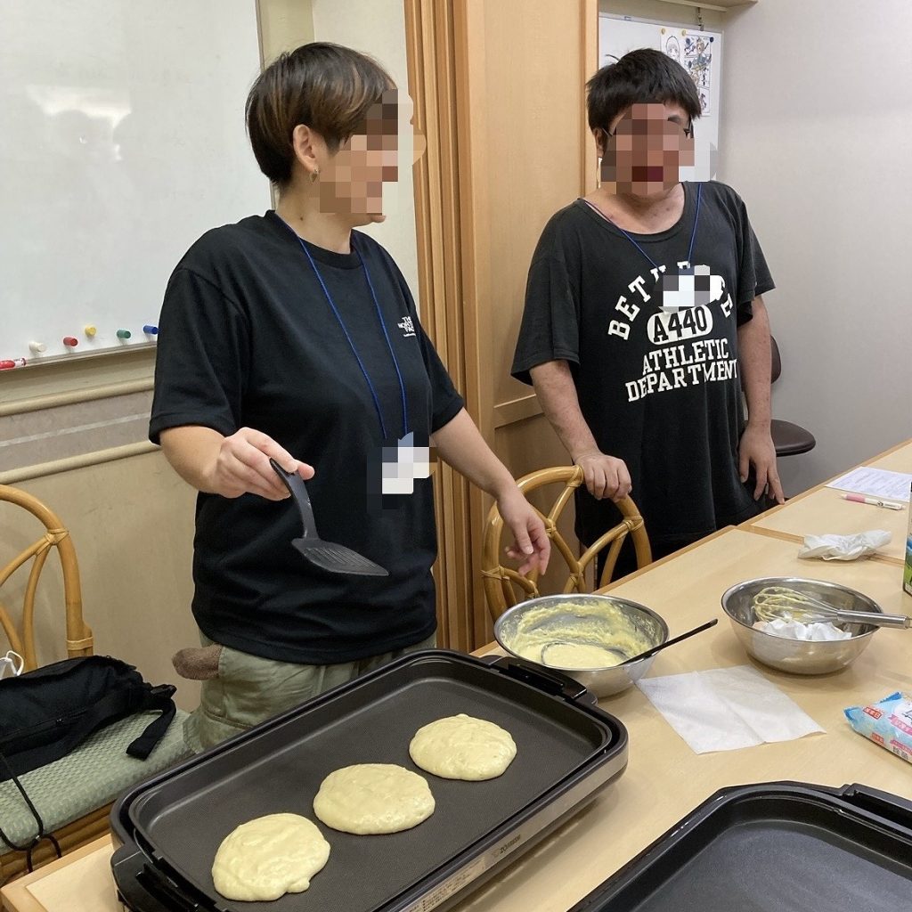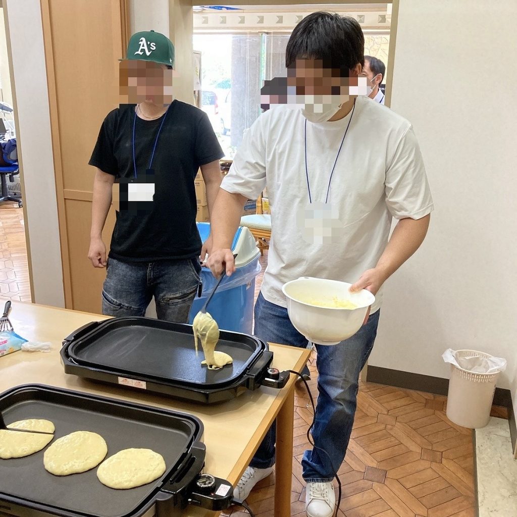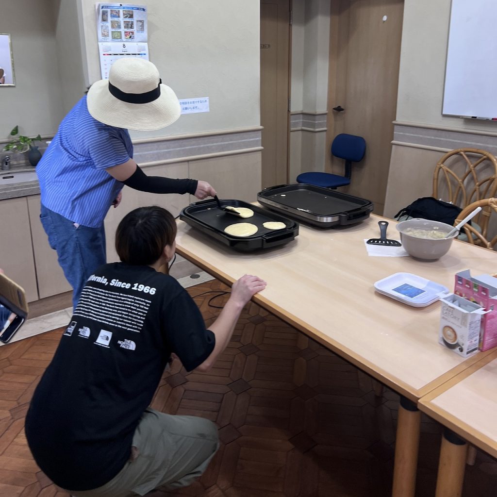 二人一組となり、どのチームが一番ふわふわになるかを競いながらも、楽しく調理をしてふわふわ!?なホットケーキができました🥞