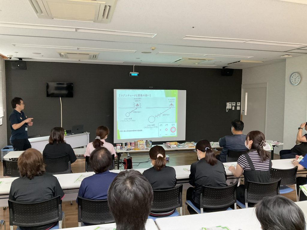 保健所と市役所から、講師をお招きして感染予防、防災研修を行いました。