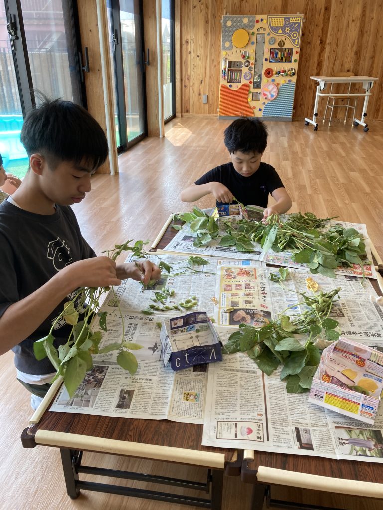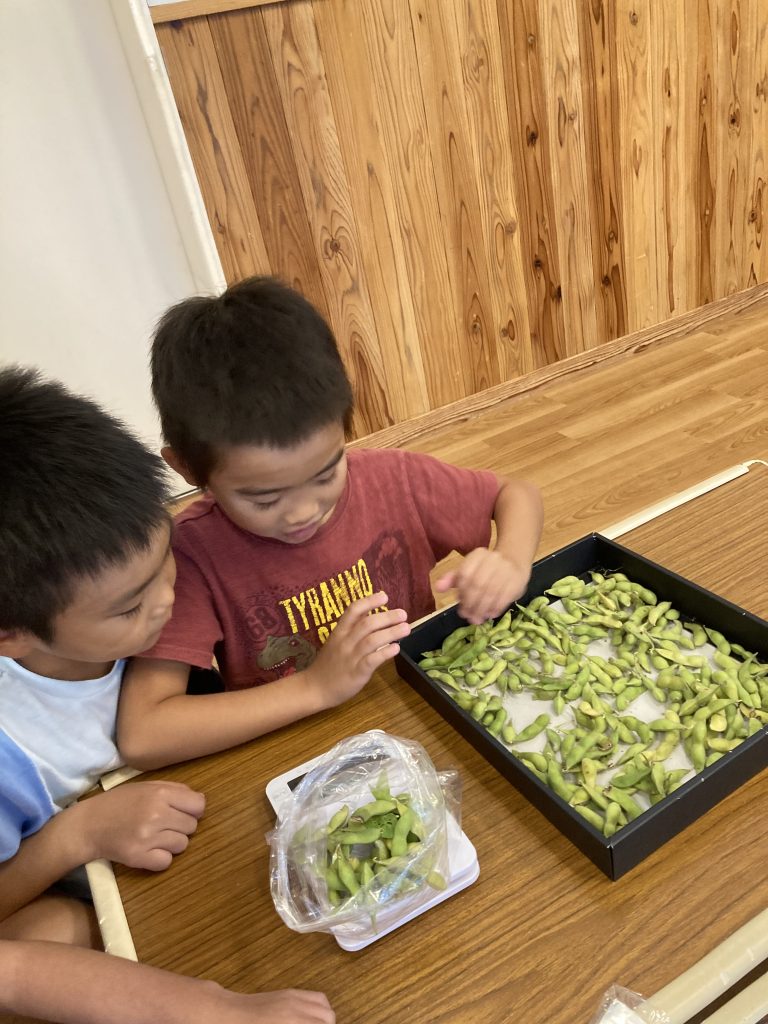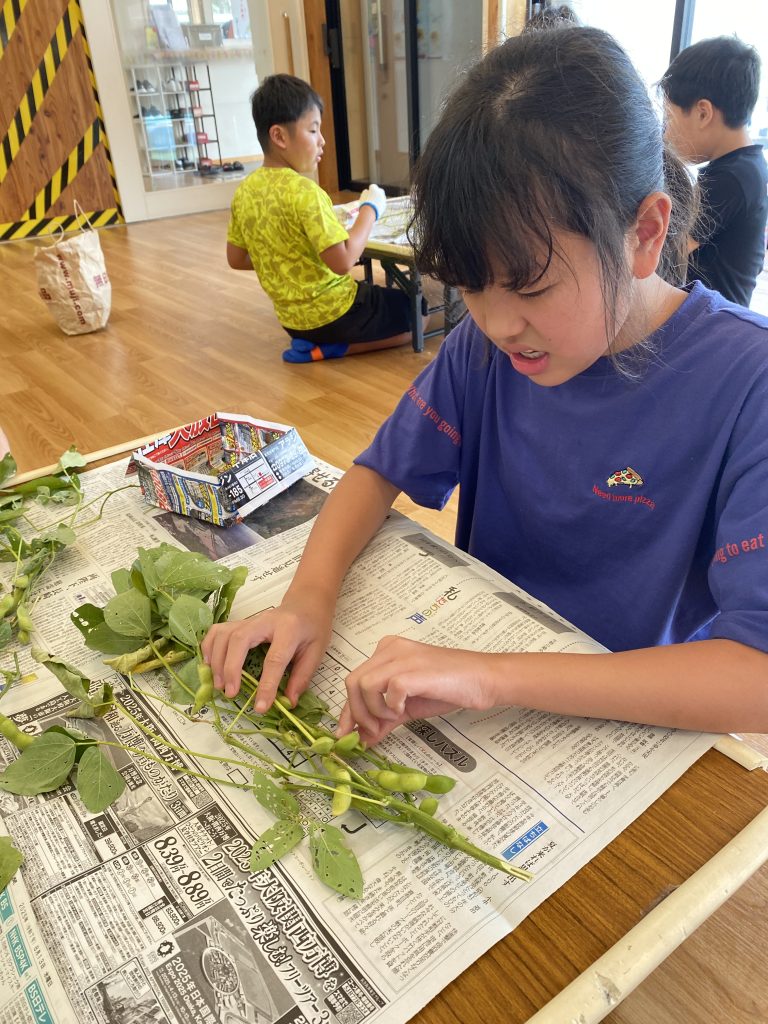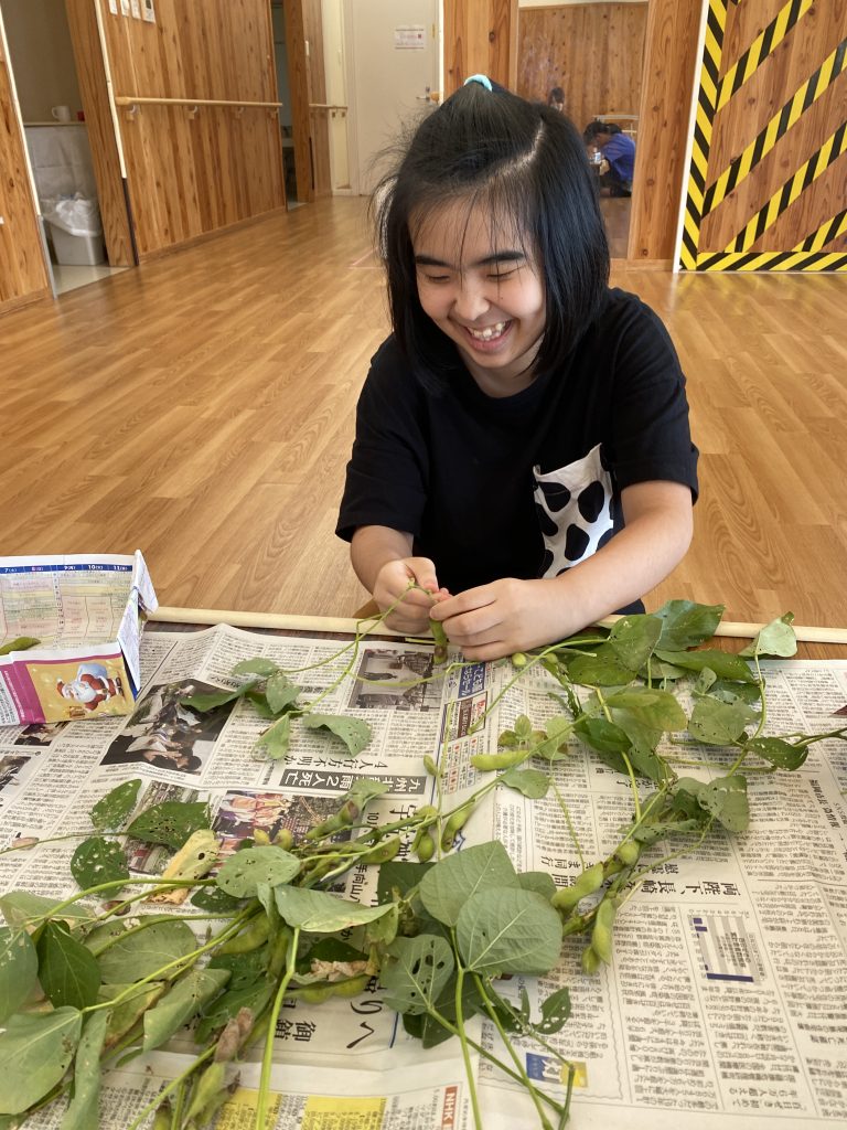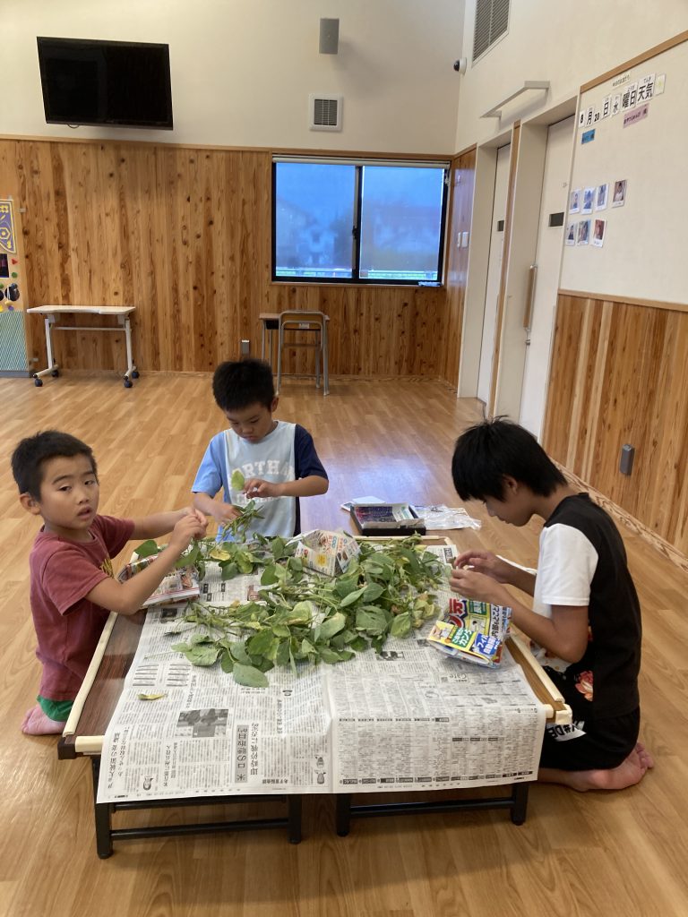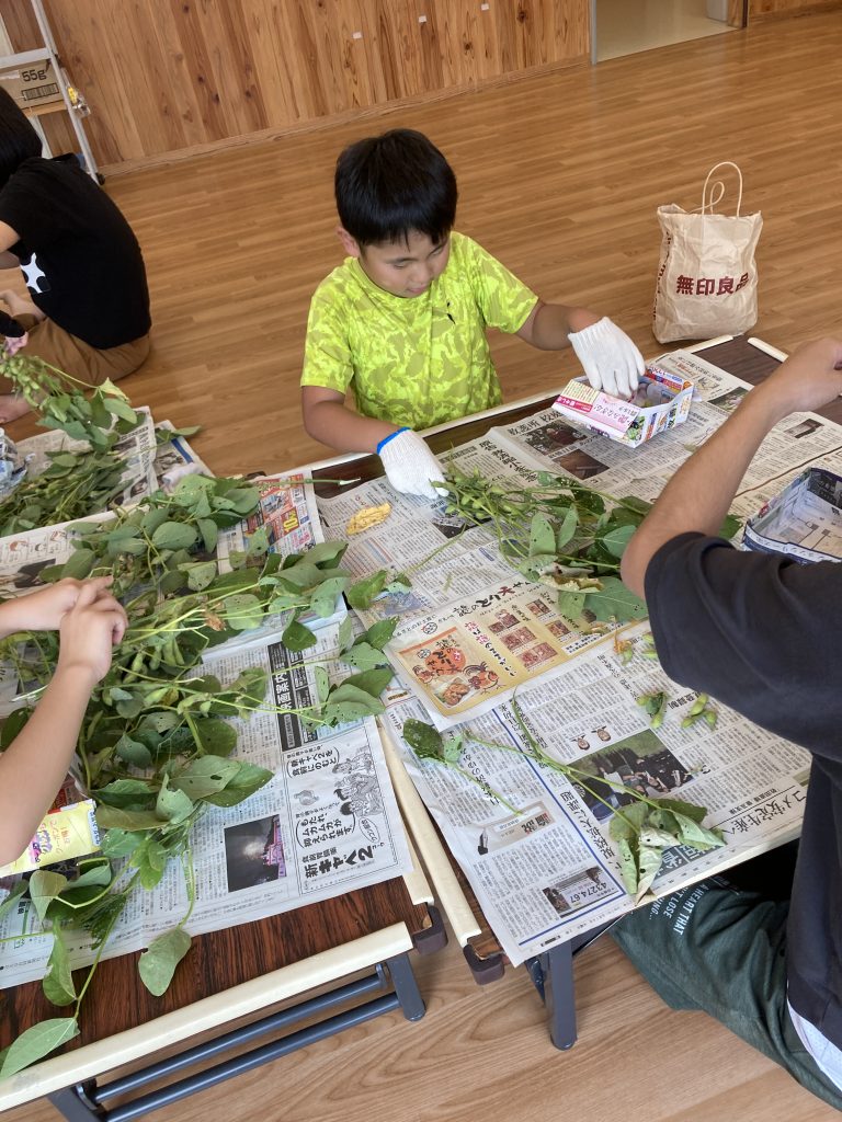 枝豆は収穫をして、みんなで葉っぱと実を取り分けました。