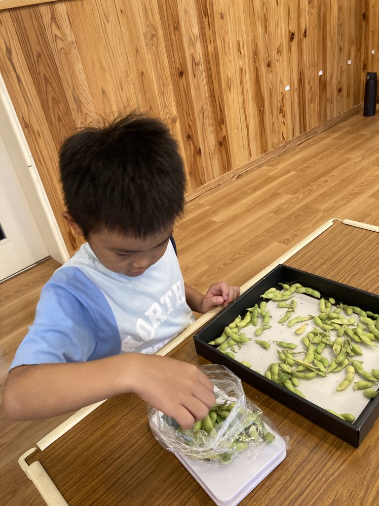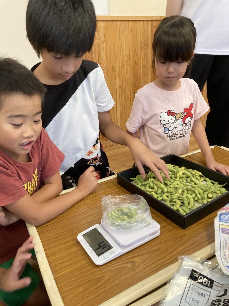 とりわけた枝豆はグラムをはかって、おうちにもって帰ります。