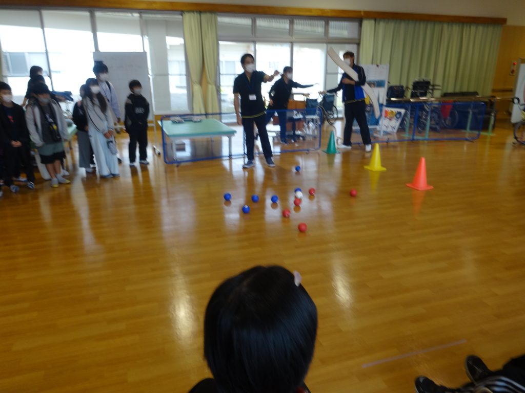 ボッチャ体験では、ご利用者様がお手本をし和気あいあいと行いました。