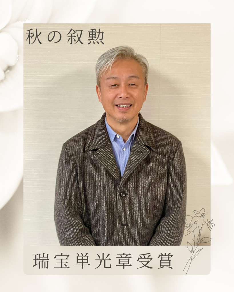 大分県日田はぎの園長兼地域生活支援センターはぎのセンター長の穴井靖彦さんが、このたび瑞宝単光章を受章されました。瑞宝単光章は、国や地方公共団体の公務や公共的な業務において永年にわたり従事し、功績を残された方を表彰する勲章であり、福祉の分野でも授与されるものです。