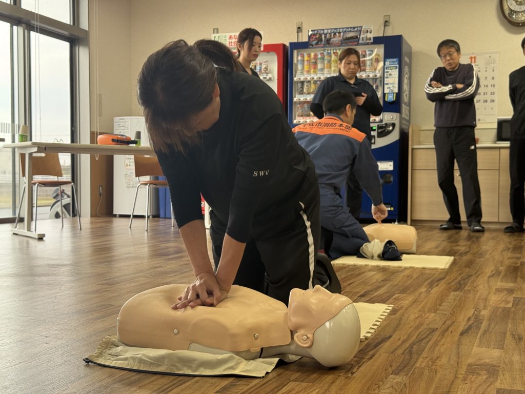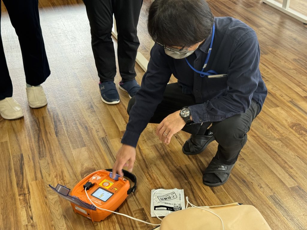 今回の研修では、心肺蘇生法やAEDの安全な使用方法について現場で即実践できる内容を中心にご指導いただきました。