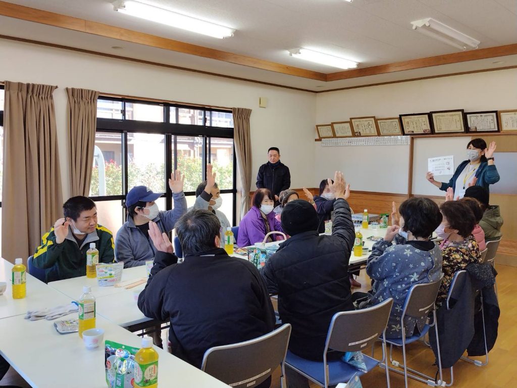 このあとも九重町社協職員からの防災に関するクイズがあり、和やかな雰囲気で、恵良団地居住者との交流を図ることができました。