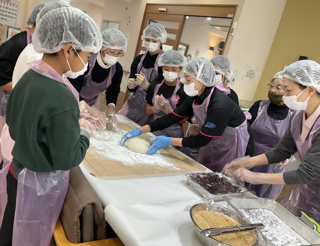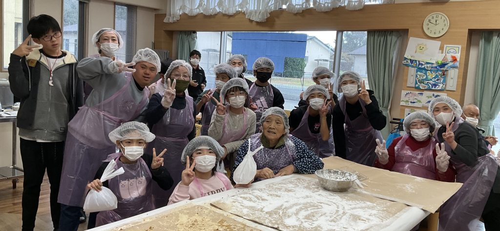 当日はデイサービスをご利用している方々と糸口児童クラブの児童が一緒にお餅を丸め、あんこやきなこのお餅を作ったり、交流を深めました。