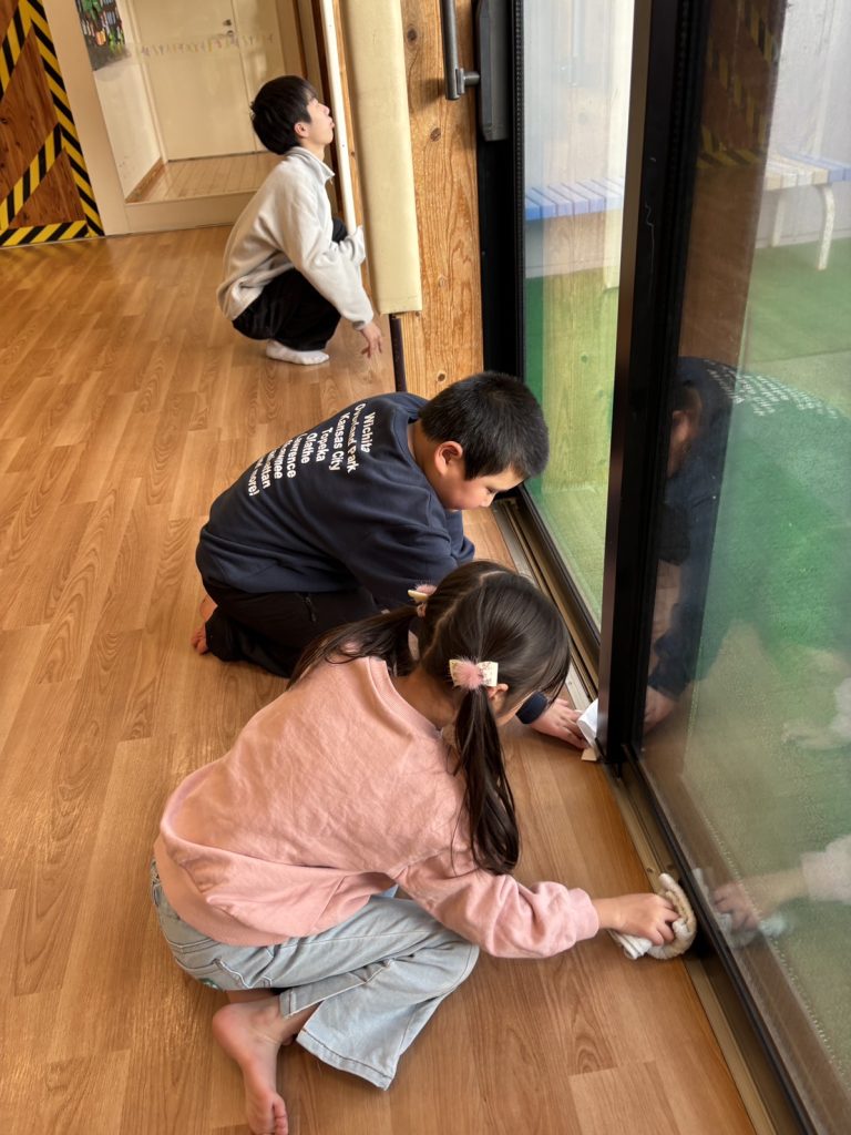 いつも利用をしているぴーすの大掃除を児童発達支援のこどもたちと放課後等デイサービスのこどもたちみんなで協力して行いました。