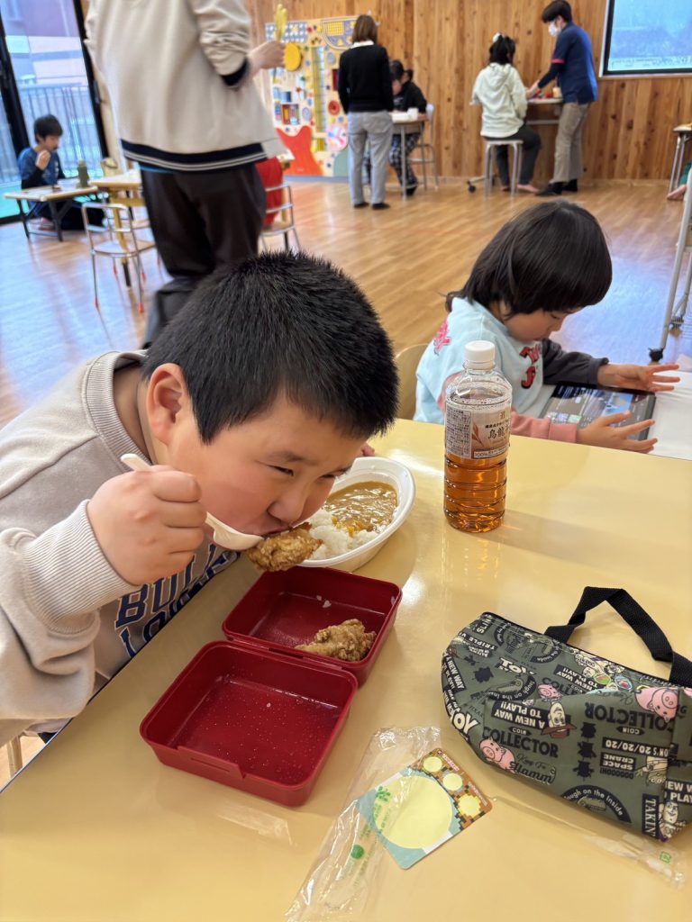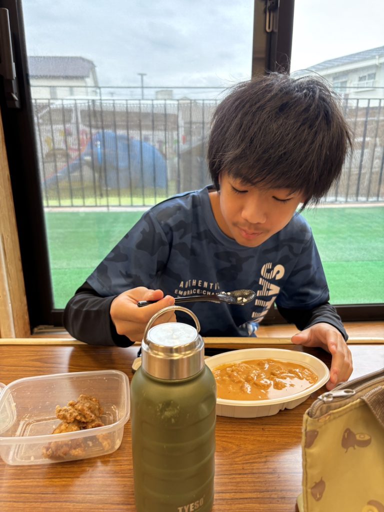 家からご飯を持ってきて、みんなでカレーを食べました!