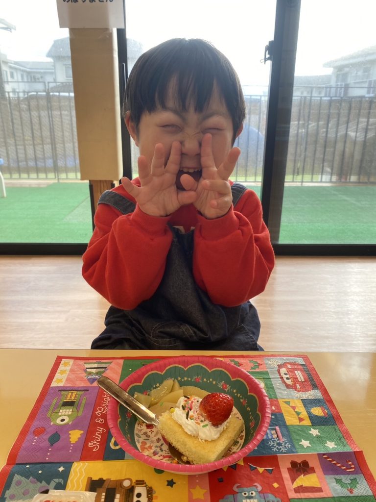 おやつにクリスマスケーキを作って、みんなで食べました🍰