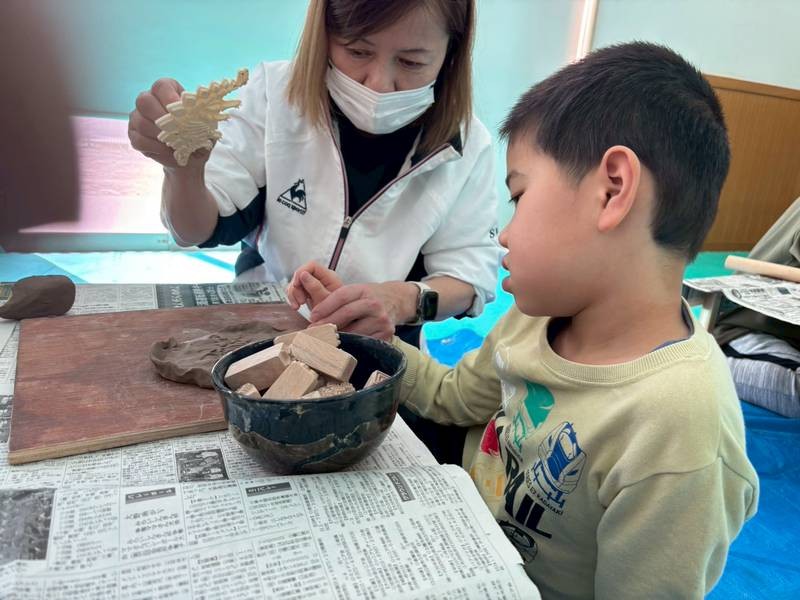 子どもたちは粘土の感触を楽しみながら、お皿やカップなど思い思いの作品づくりに挑戦しました。みんな時間を忘れて作品づくりに没頭し、形や模様に一人ひとりの個性が表れ、世界に一つだけの素敵な作品が完成しました。