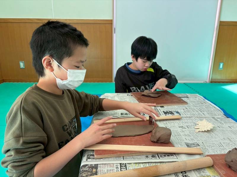 子どもたちは粘土の感触を楽しみながら、お皿やカップなど思い思いの作品づくりに挑戦しました。みんな時間を忘れて作品づくりに没頭し、形や模様に一人ひとりの個性が表れ、世界に一つだけの素敵な作品が完成しました。