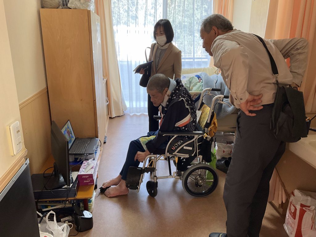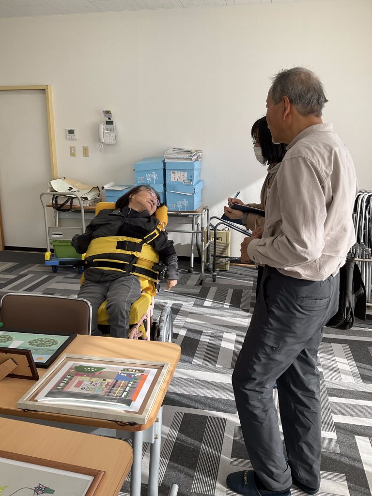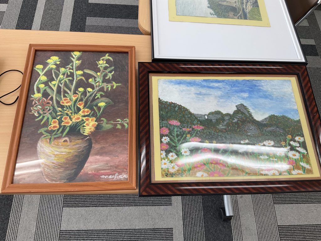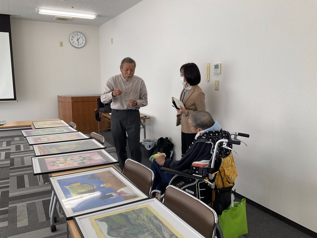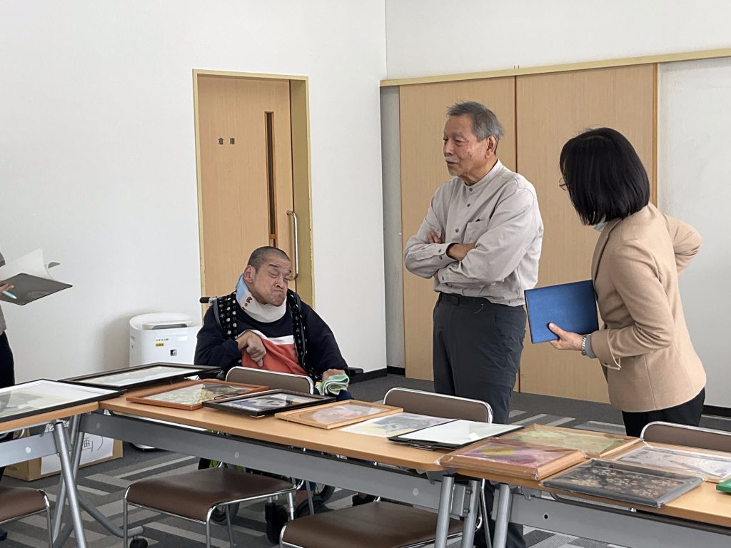 おおいた障がい者芸術文化支援センターの職員と大分大学の先生(久間 清喜先生)が作家さん発掘の為に来園されました。