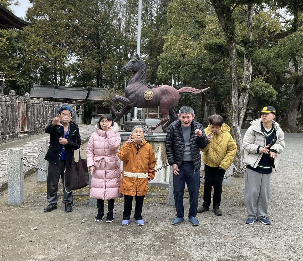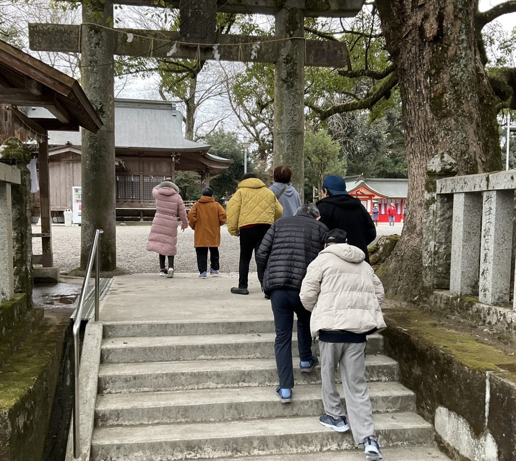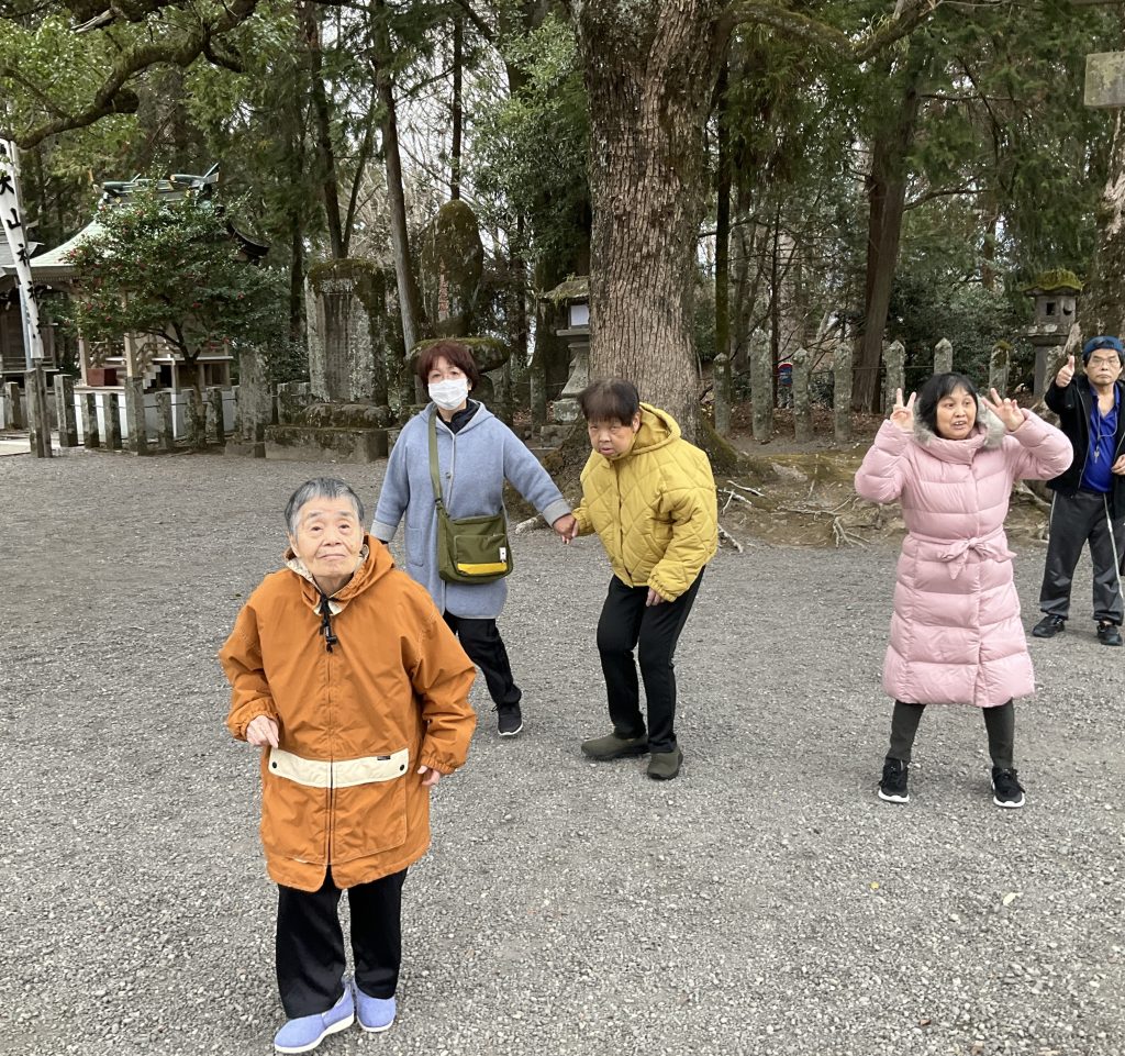 先日、新年の行事としてご利用者の方と大原神社へ初詣に行きました。当日は穏やかな雰囲気の中それぞれのペースで参拝し、新しい一年の健康と笑顔を願いました。外出を通して季節行事を感じることができ気分転換にもなり、終始落ち着いた表情や笑顔が多く見られる時間となりました。