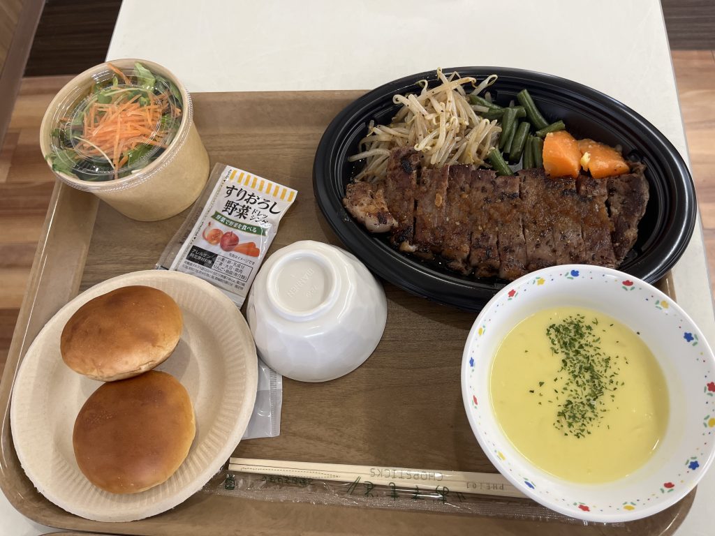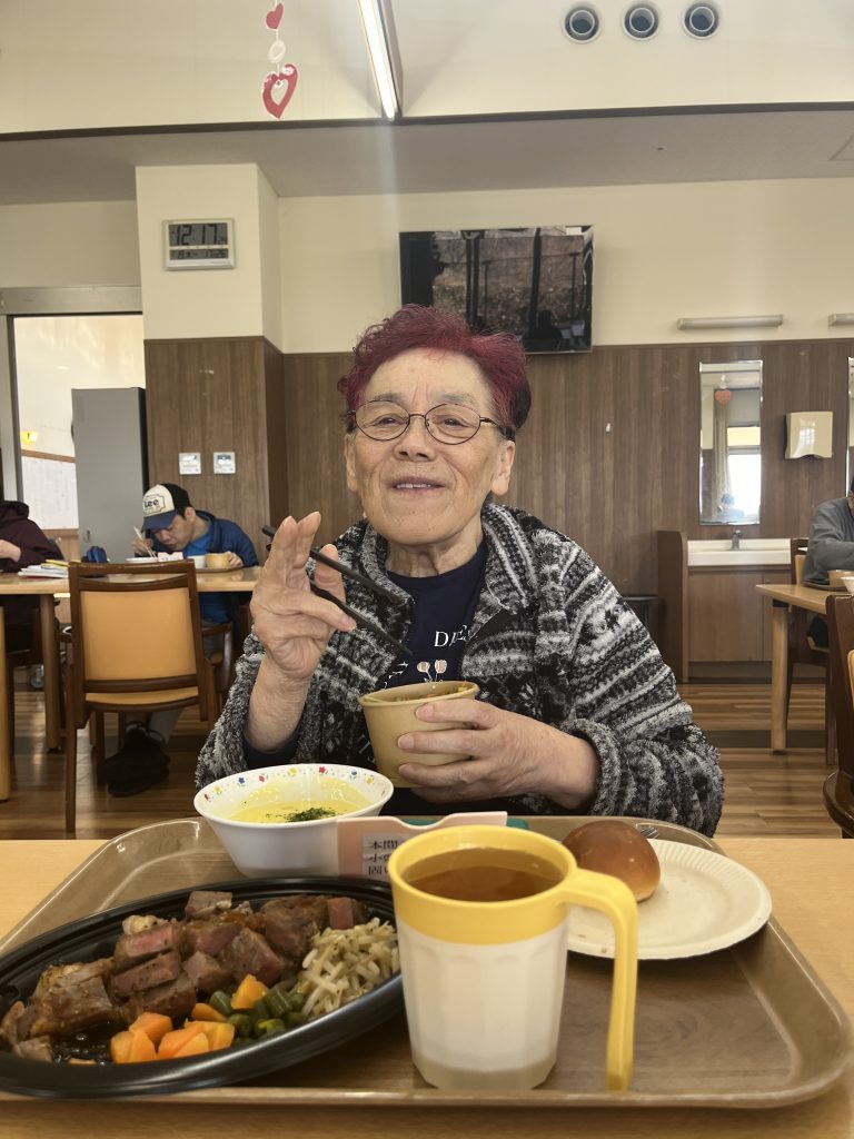 外注食(ナチュラエイトのステーキ) 2月19日(木)に、カフェ&レストラン natura+∞(ナチュラエイト)の皆さんに出張していただき、 ステーキを食べました🥩 お肉も柔らかく、ボリュームがあって大満足!! ご利用者の笑顔がたくさん見られました😊 美味しそ~😊 トップに戻る