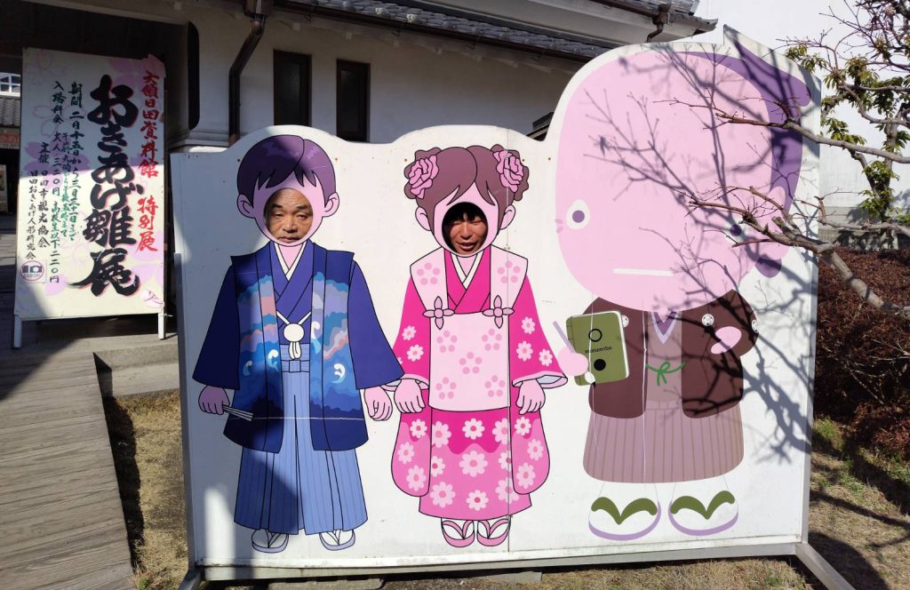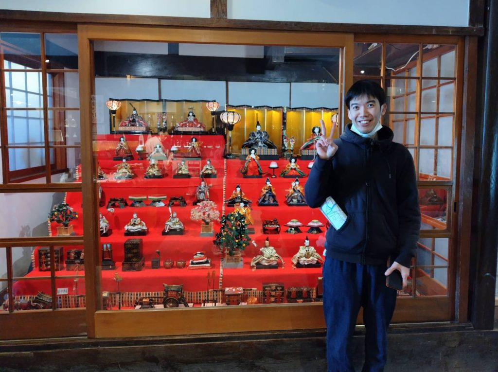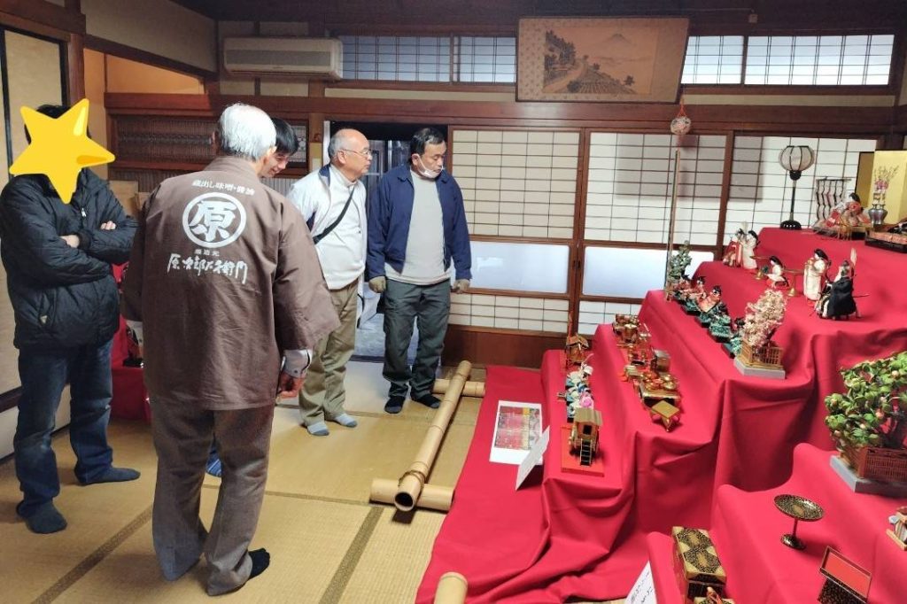 隈町では原次郎左衛門に飾られているお雛様を見学し、スタッフの説明に関心を持って聞く様子が見られました。