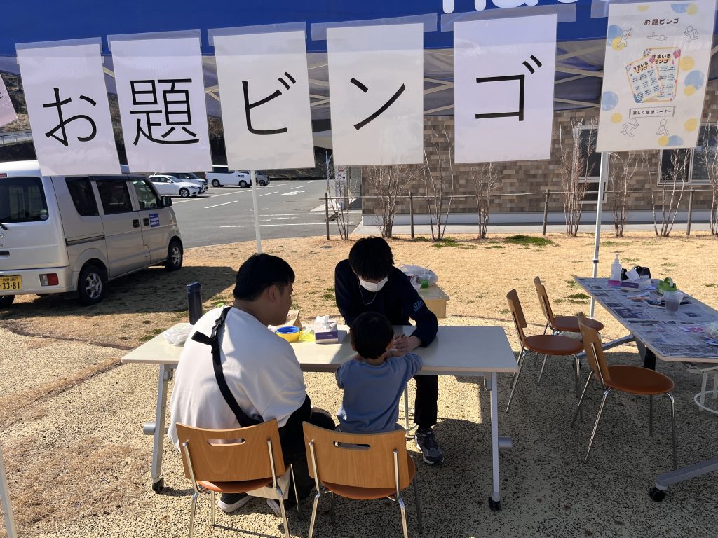 今回は、ピザパンづくりや絵手紙のワークショップ、おもちゃ病院ややま、専門職による健康ブースなど体験コーナーも充実。子どもから大人まで気軽に参加でき、笑顔があふれる一日になりました。出店者と来場者が交流し、つながりの広がりを感じられるマルシェとなりました。