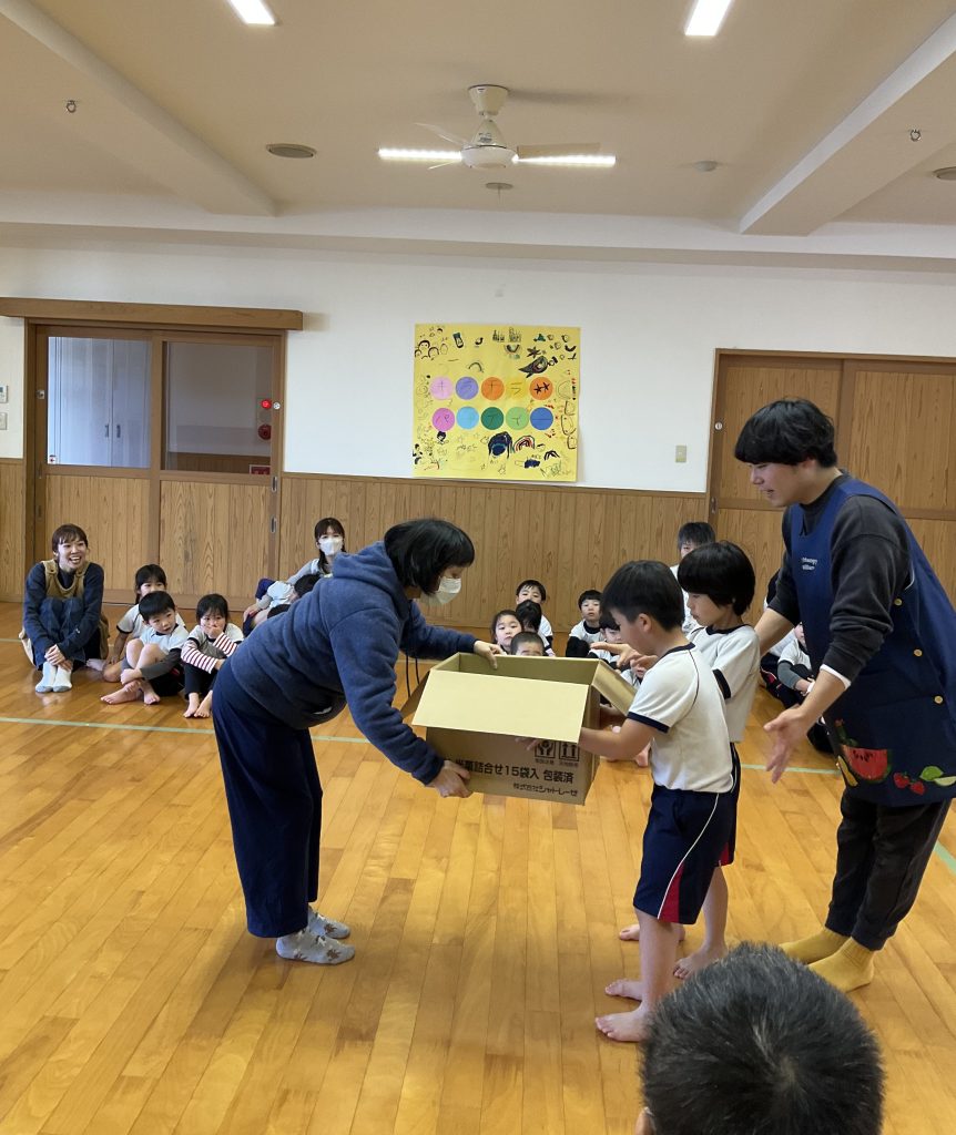 先日、五和保育園を訪問し園児の皆さんとご利用者の皆さんで玉入れを行いました。元気いっぱいの子どもたちの声に包まれながら楽しみました。最後にバレンタインデーとしてお菓子の詰め合わせをお渡ししました。日頃の感謝の気持ちを込めてお届けし、和やかな雰囲気の中で交流を深めることができました。ご利用者の皆さんにとっても地域との繋がりを感じられる温かい時間となりました。今後も地域とのご縁を大切にしながら心の通う交流を続けてまいります。