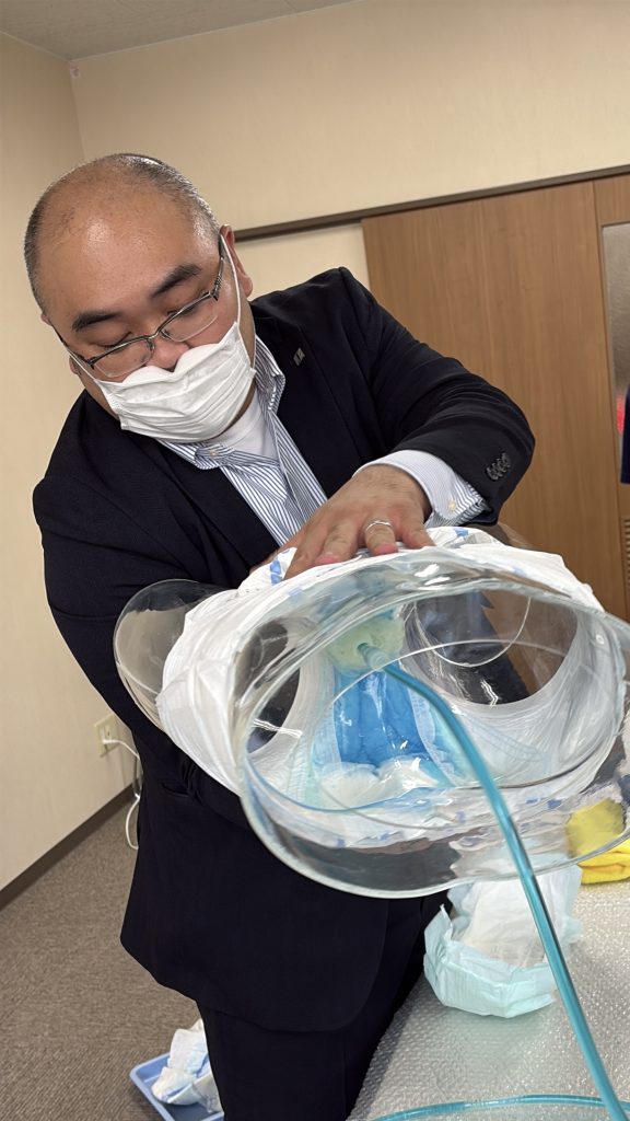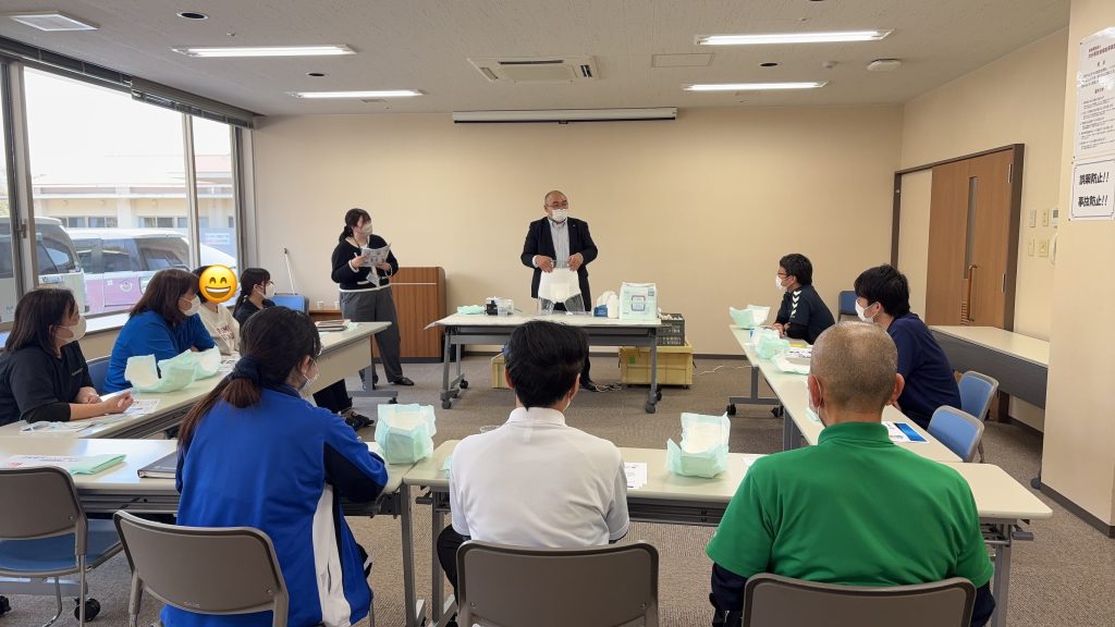 カミ商事株式会社九州支店の方をお招きしおむつやパット、排泄についての研修をしていただきました。
