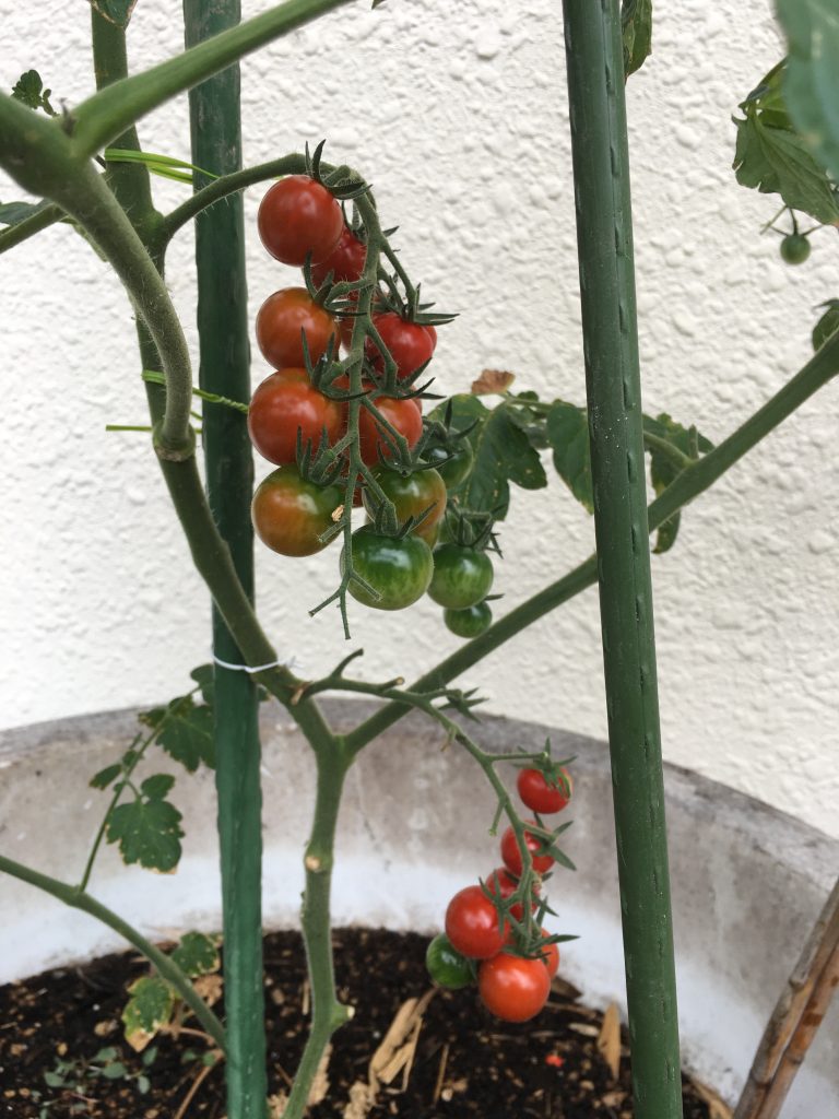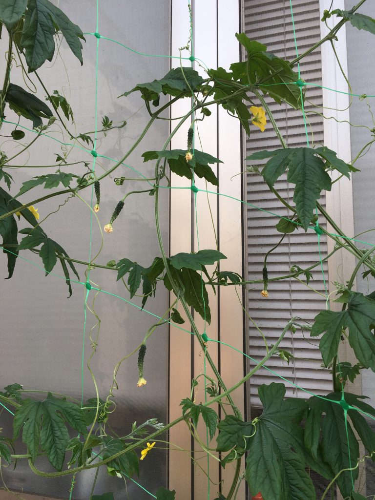 春に植えた、ゴーヤやミニトマトが少しずつ実り始めています。